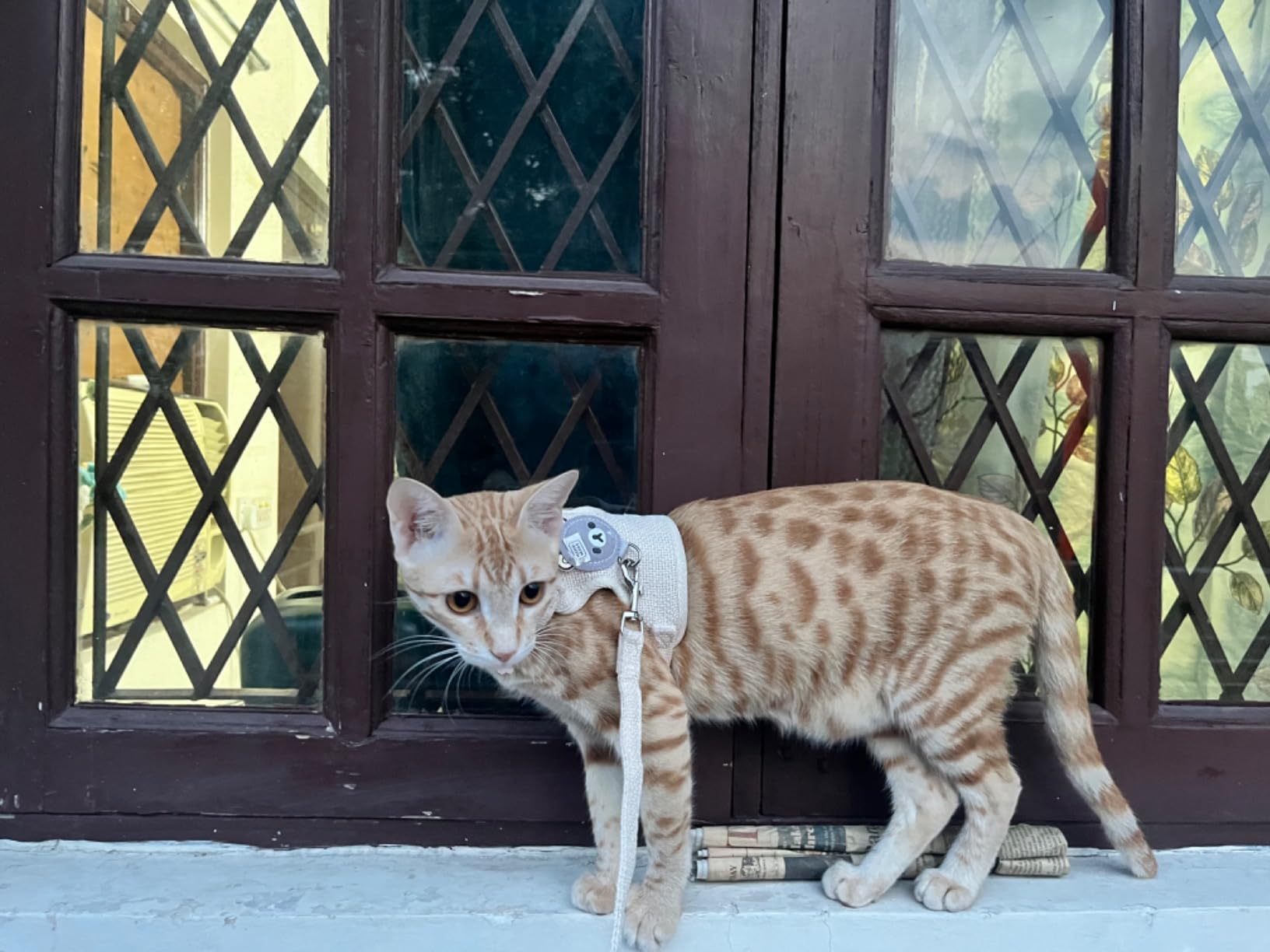 I thought that this would be very cheap and flimsy but when i opened it was such good quality and felt like cloth and breathable and very comfortable..the leah is good length and loved the air mesh inside my cat was very comfortable even though it was not leash trained and is really cute also but the vest even tho it fits properly the vest looks really small on my cat from the top but still looks very cute